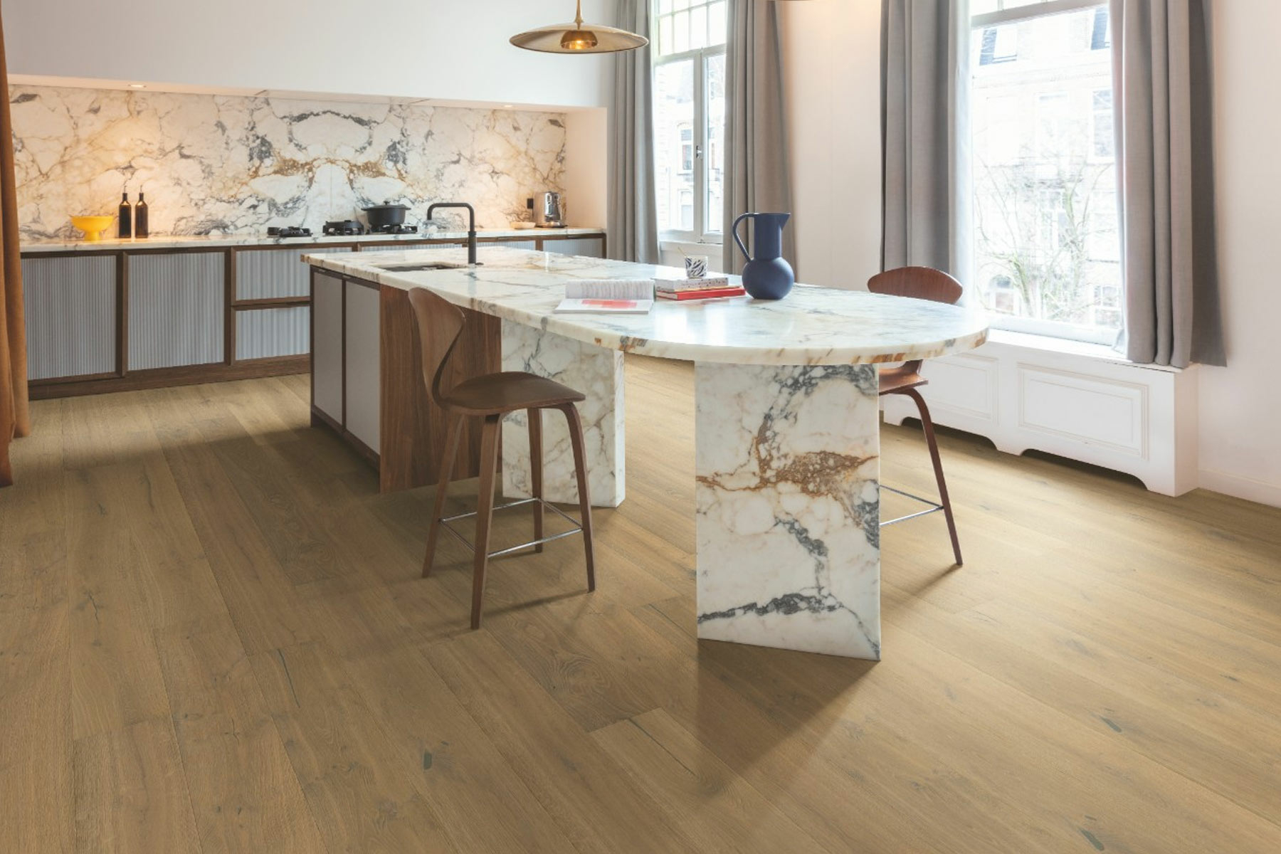 Quickstep Cascada Mustard Oak Engineered Flooring, Rustic, Extra Matt Lacquered, 190x13x1820mm is a water-resistant engineered oak flooring suitable for use in wet areas such as bathrooms and kitchens...